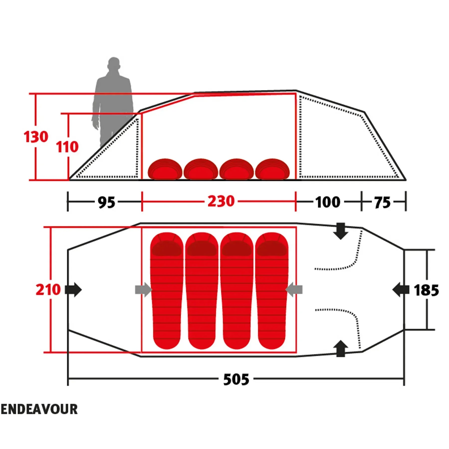 Four-season tunnel tent designed for trekking, alpine expeditions, and demanding camping conditions. The Wechsel Endeavour UL provides a lightweight yet durable solution with high waterproof ratings, strong aluminum poles, and a spacious interior for four people.